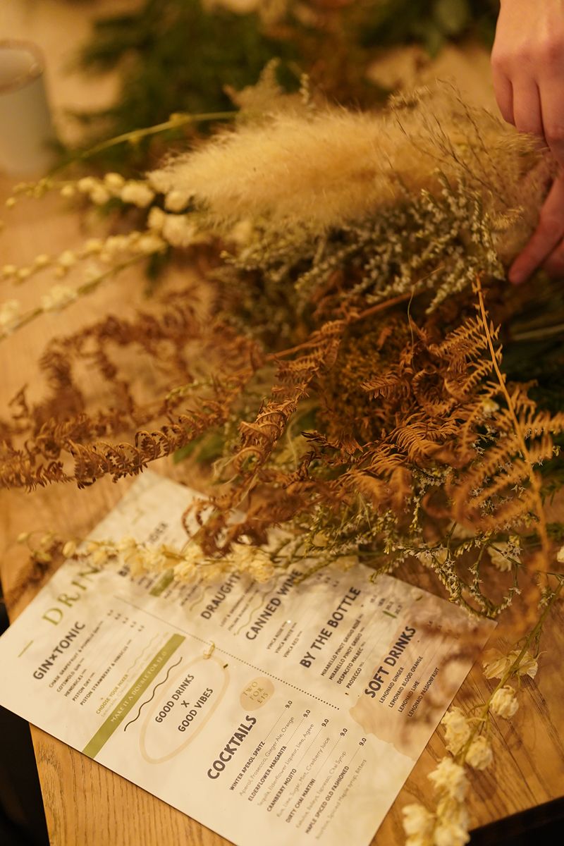 Using a pre-made & sustainable willow base you will be able to choose from a delicious variety of foliage’s, berries and dried elements.